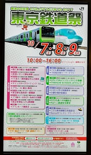 10月7日〜9日の3連休に開催されている東京鉄道祭2017ですが、東京駅だけではなく周辺の各駅でもイベントが開催されるというもの。電車大好きなお兄ちゃんのために!! 初日に東京駅へ行ってきましたー